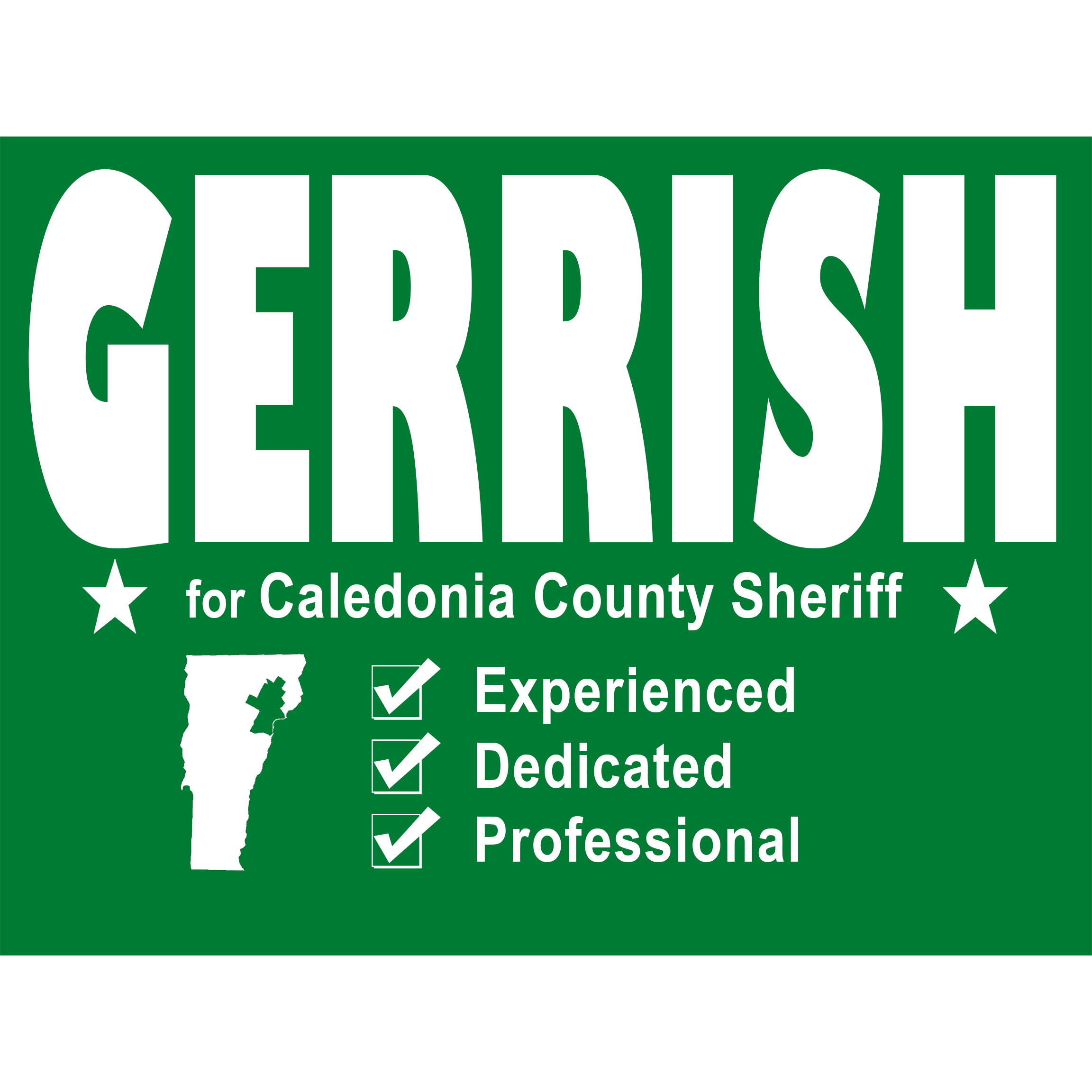 I have the experience, training and motivation to serve our county. If you choose to elect me as Caledonia County Sheriff, you can be confident you will be served by a qualified and dedicated sheriff who will professionally lead the department and make our community safer.